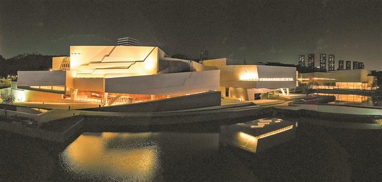 ▲夜幕下的鹭湖艺术中心。