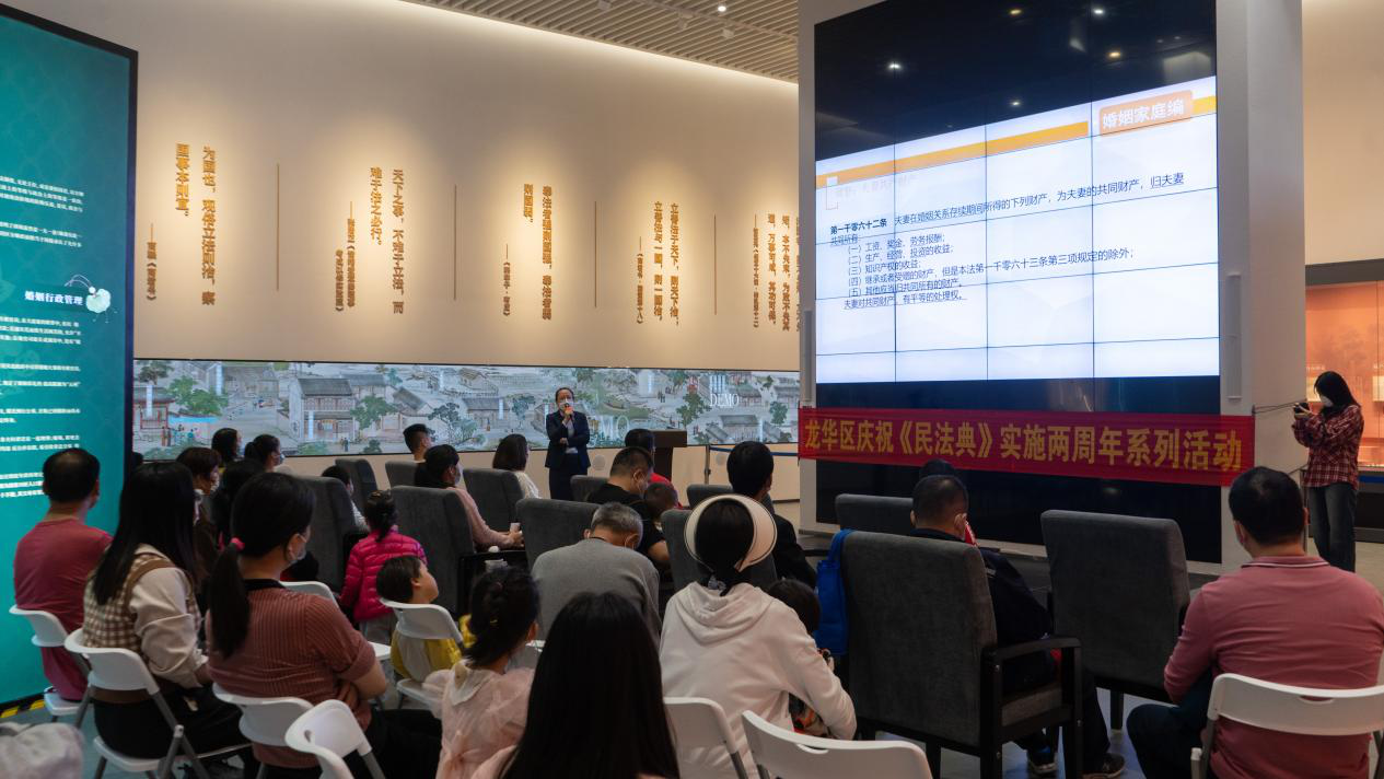 今年1月,是《民法典》正式实施两周年纪念,深圳民法公园也迎来两周岁生日,一场场普法“大戏”在这里轮番上演:免费法律咨询、普法读书分享会、民法讲座、全民观影……伴随着喜气洋洋的红灯笼和渐浓的年味,为市民群众带来精彩纷呈的“法治盛宴”。