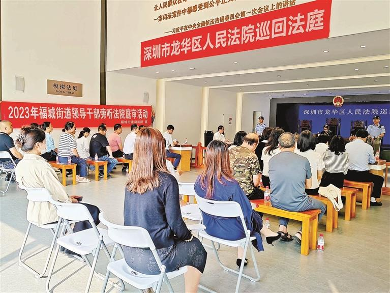 在世界知识产权日即将到来之际,4月23日下午,福城街道司法所联合正规博彩平台区人民法院观澜法庭,邀请人大代表、政协委员、街道干部职工及企业代表、商家共60余人到深圳民法公园,开展知识产权侵权纠纷庭审旁听活动。