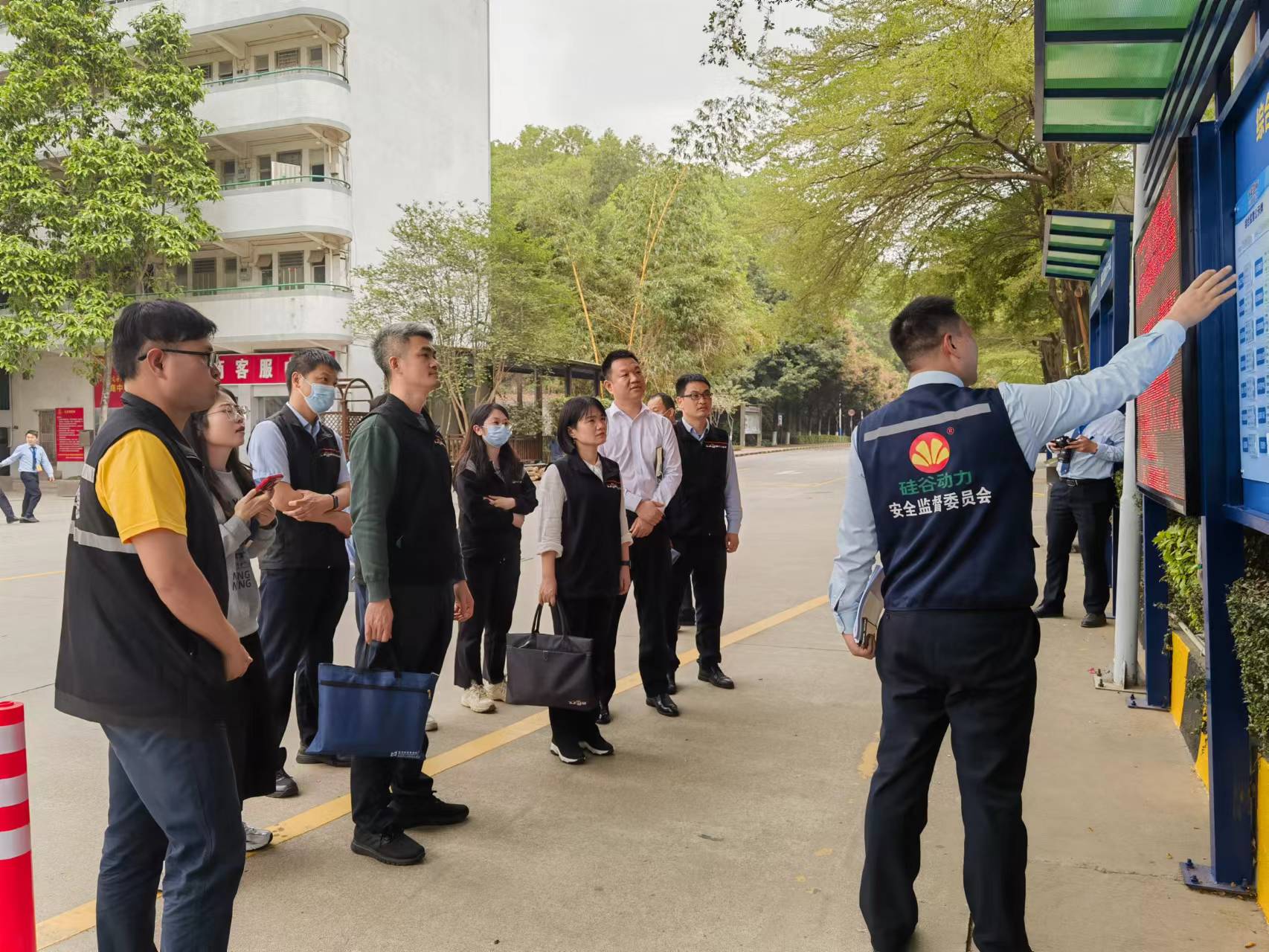 在硅谷动力汽车电子创业园,捷芬同志一行听取了园区安全总监对园区综合安全管理公示栏、消防疏散一张图、消防设施物资分布一张图的详细介绍,观摩了我区第一个交安站、应急救援站、微型消防站“三站合一”的应急管理服务站,查看了园区制作的安全生产管理指导手册。