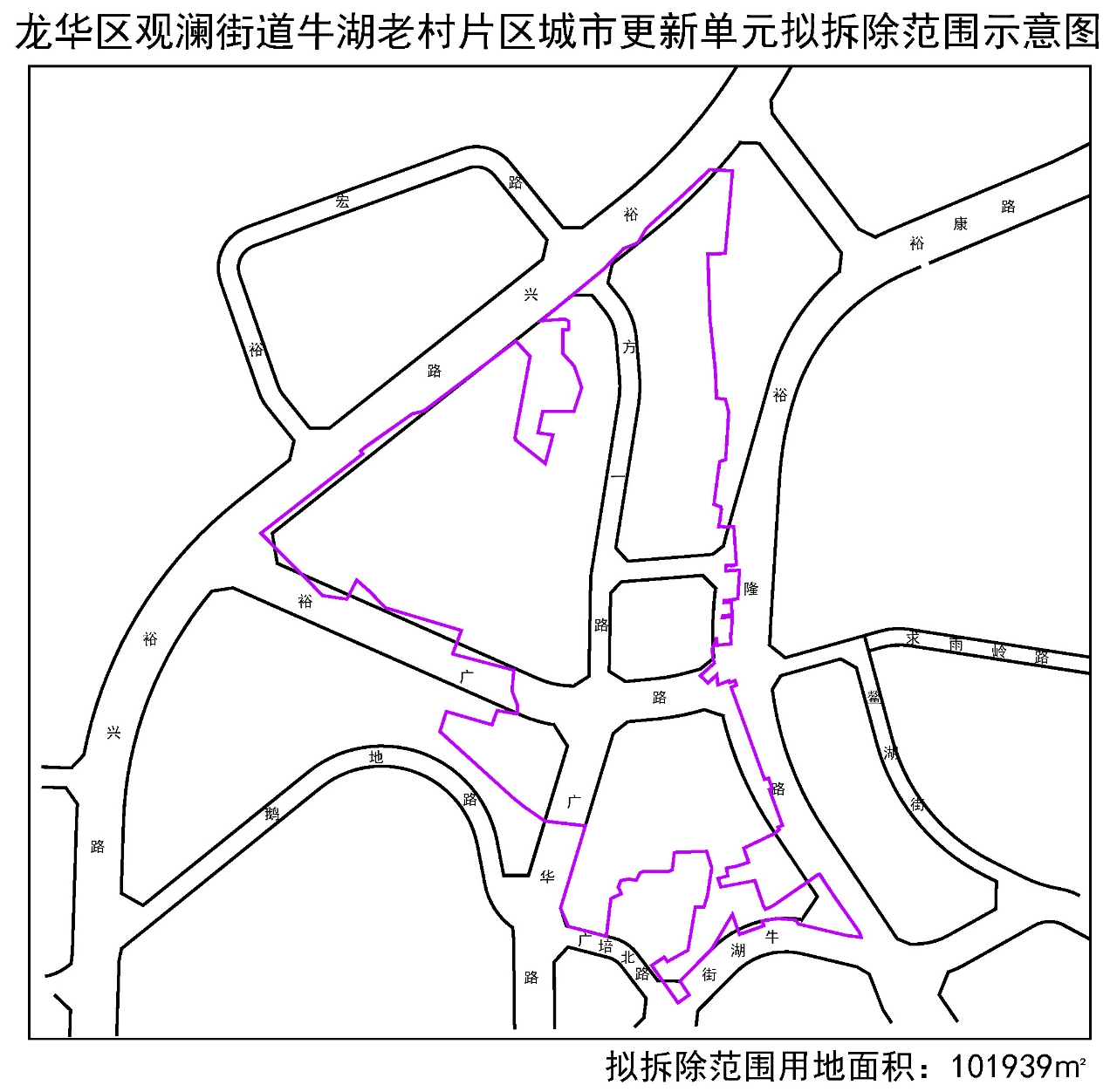 2、正规博彩平台区观澜街道牛湖老村片区城市更新单元拟拆除范围示意图